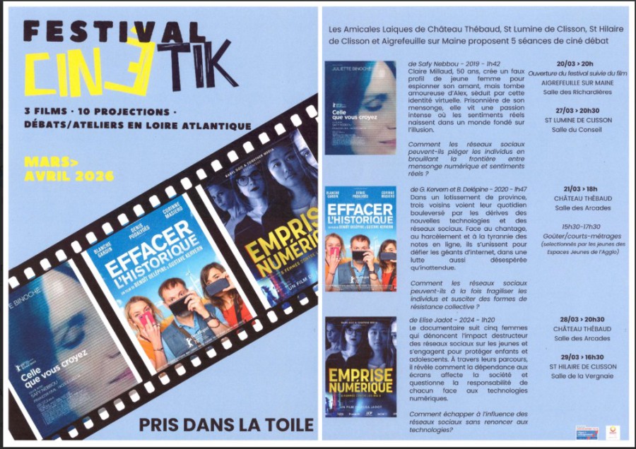 - Cinétik en partenariat avec l'Amicale de Château Thébaud, St Hilaire... : projection de 3 films dans